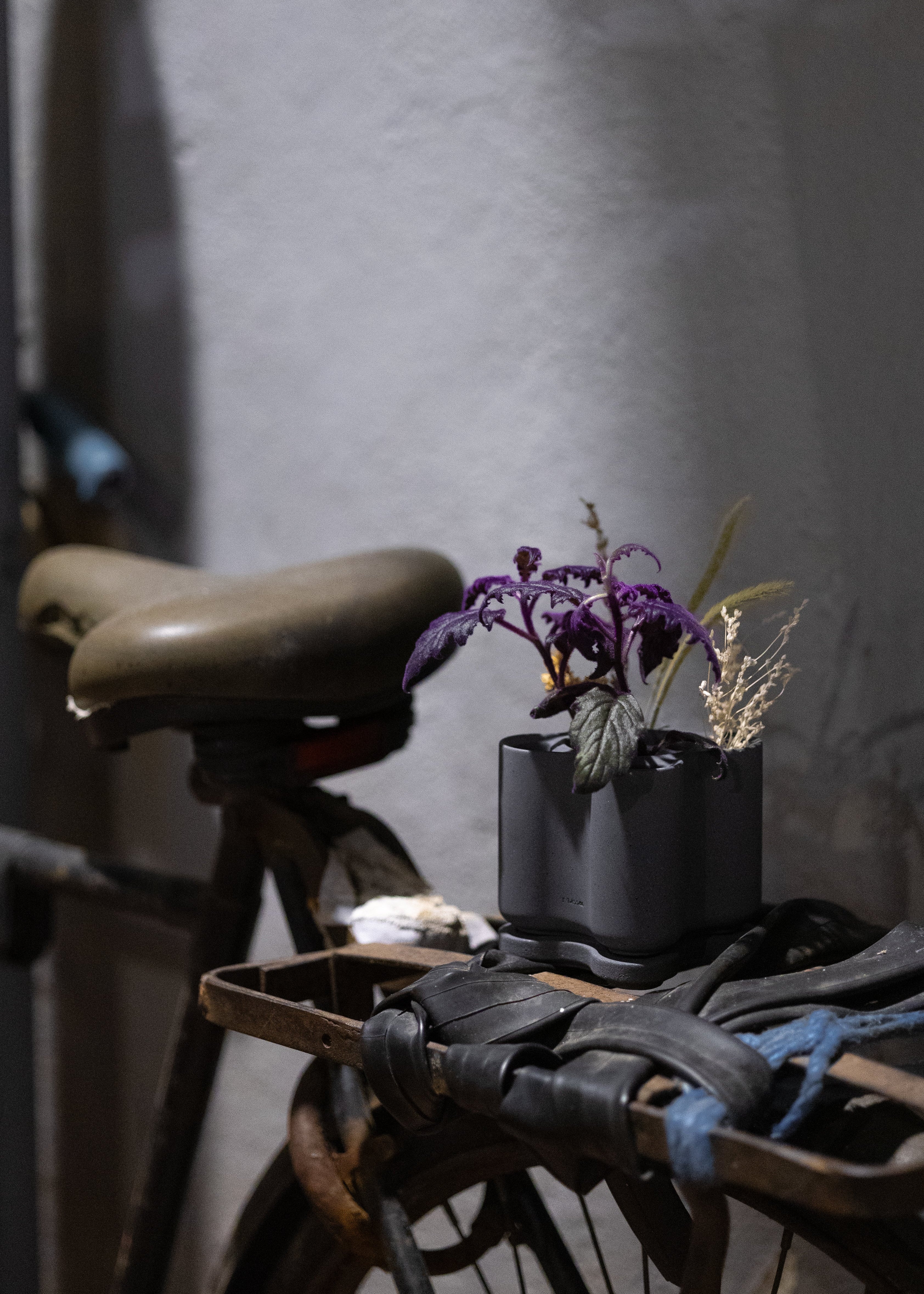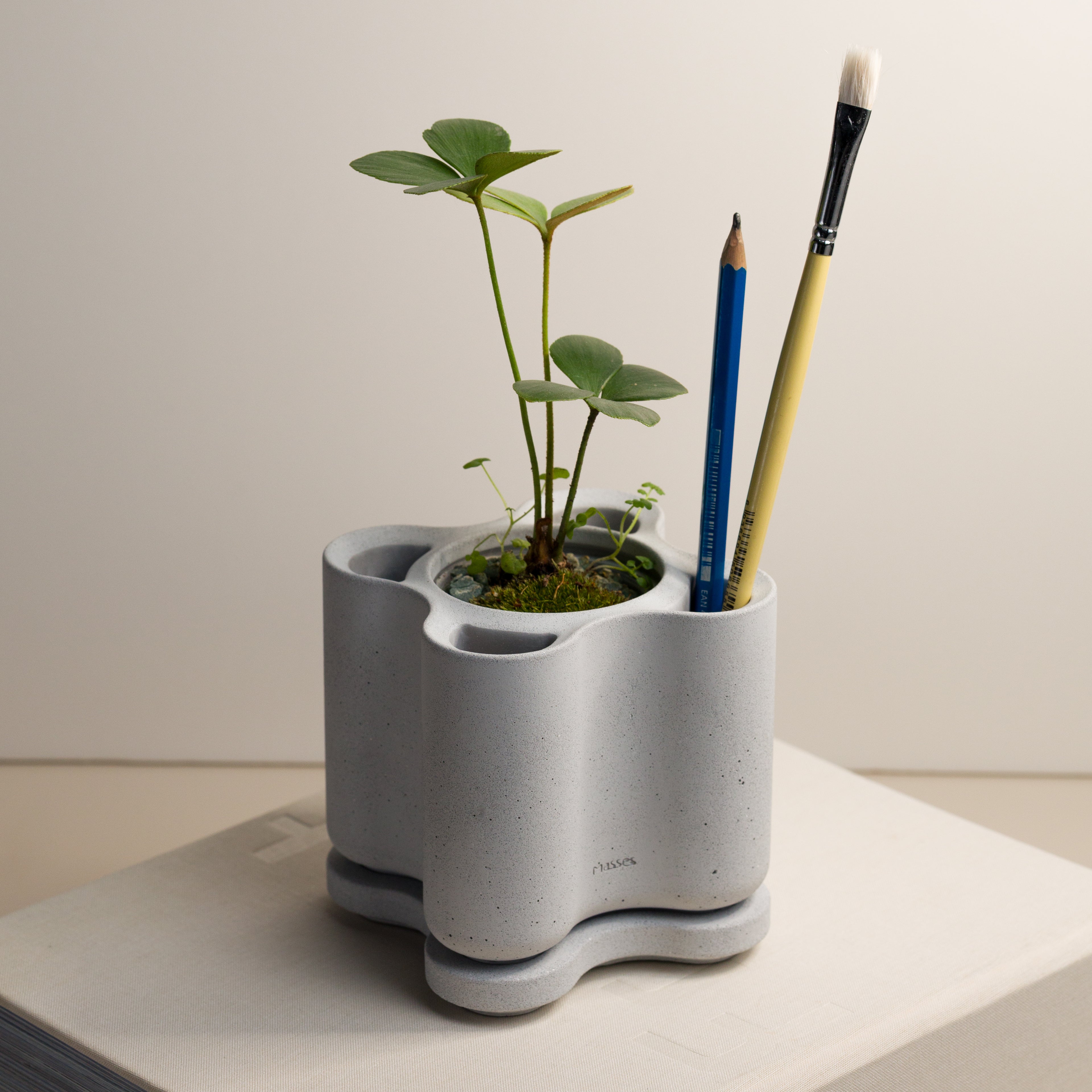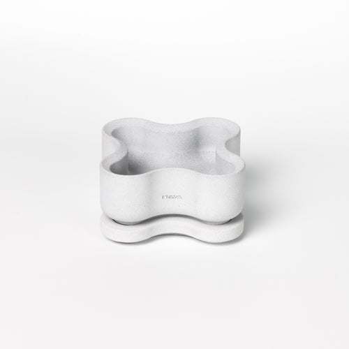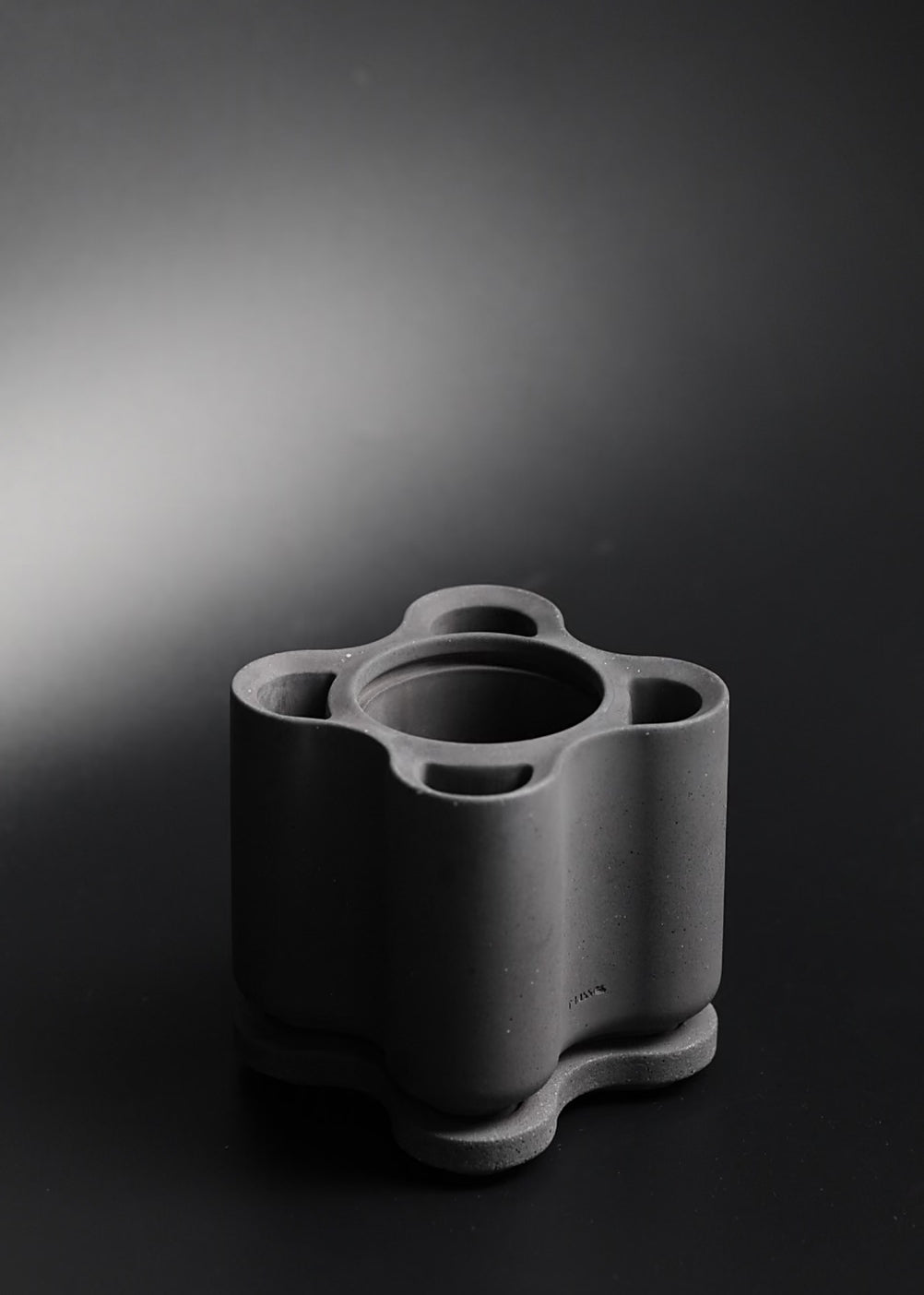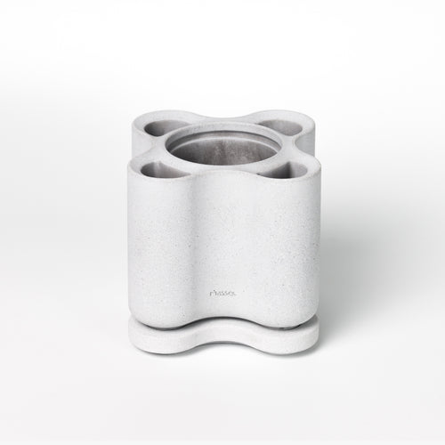 The handcrafted concrete evokes a balance of softness and substantial mass, carrying the quiet quality of a sculpted stone.